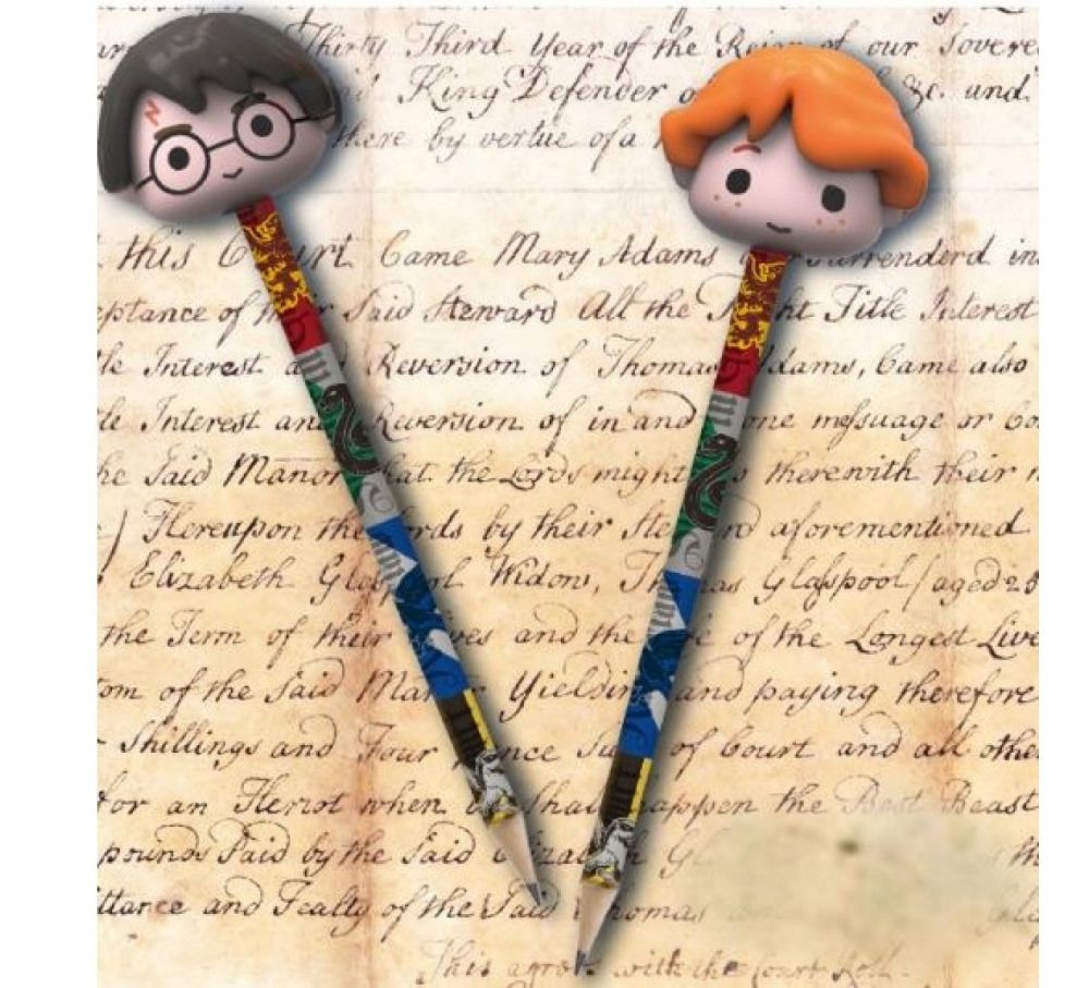 Set di 2 matite con gomma personaggi Harry Potter e Ron Weasley.