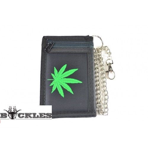 Portafoglio ripiegabile in poliestere resistente con chiusura velcro e dotato di una catena con moschettone in metallo resistente che consente di attaccarlo al passante dei pantaloni per evitare la perdita o lo scippo.