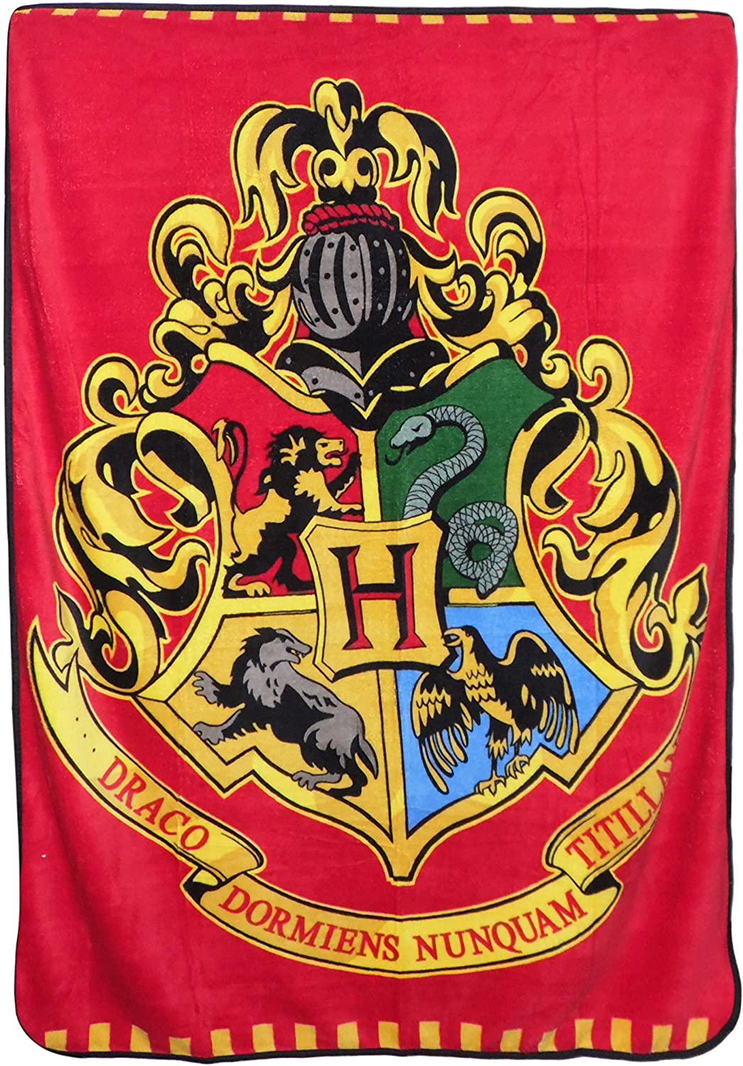 La coperta per bambino con lo stemma della scuola di magia di HOGWARTS. Dimensioni 120x150 cm. Materiale poliestere.