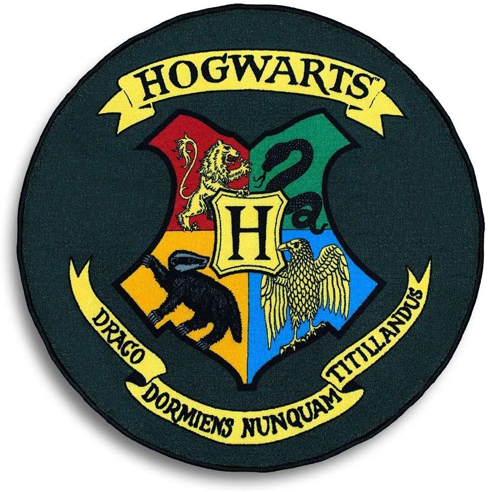 Tappeto rotondo con lo stemma della scuola di magia di HOGWARTS della saga Harry Potter. Diametro 100 cm. Materiale: 100% poliestere